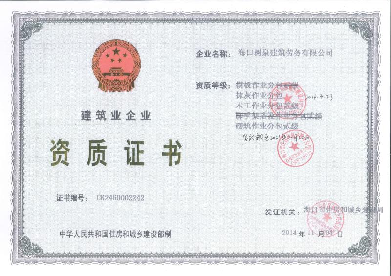 ??跇淙ㄖ趧?wù)有限公司成立于2011年,公司位于海口,其前身是一家專業(yè)建筑施工隊,自2004年即開始在海南從事建筑勞務(wù)施工。自成立至今,公司已經(jīng)擁有一支科學(xué)管理、質(zhì)量過硬、能打硬仗,搶工期的專業(yè)隊伍。能獨立承擔(dān)大中型工業(yè)與民用建筑 、室內(nèi)外裝修、各類機電設(shè)備安裝工程。代表工程有海口濱海華庭、三亞時代海岸T01/02/04/05棟高層、合肥東?;▓@二期、陵水富力灣B區(qū)高層、三亞金中海(酒店)、瓊海大印經(jīng)典花園、??诃h(huán)球海景大酒店(四星級酒店,在建中)、陵水珍珠大廈(五星酒店)、??谌f達廣場、美蘭機場二期。